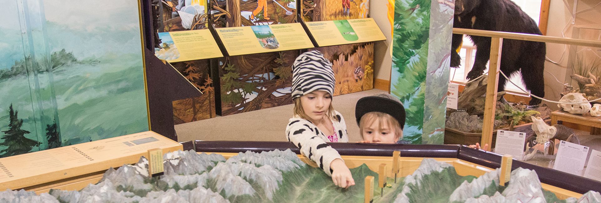 A beautiful Ktunaxa-themed stained glass window is showcased and exhibits include Cultures in Contact, the Anatomy of the Land and Wildlife.